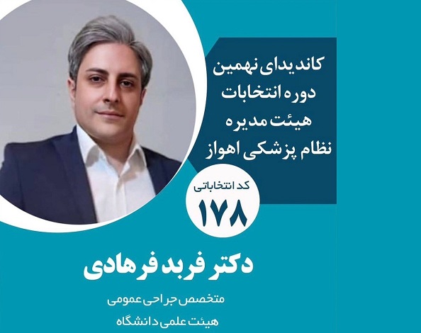 دکتر فربد فرهادی با تاکید بر اینکه دغدغه واقعی او اصلاح وضعیت موجود است و نه کسب جایگاه، ابراز امیدواری کرد که انتخابات پیشِ رو فرصتی برای جوان‌سازی، شفاف‌سازی و احیای شأن حرفه‌ای جامعه پزشکی در خوزستان و شهر اهواز باشد.»